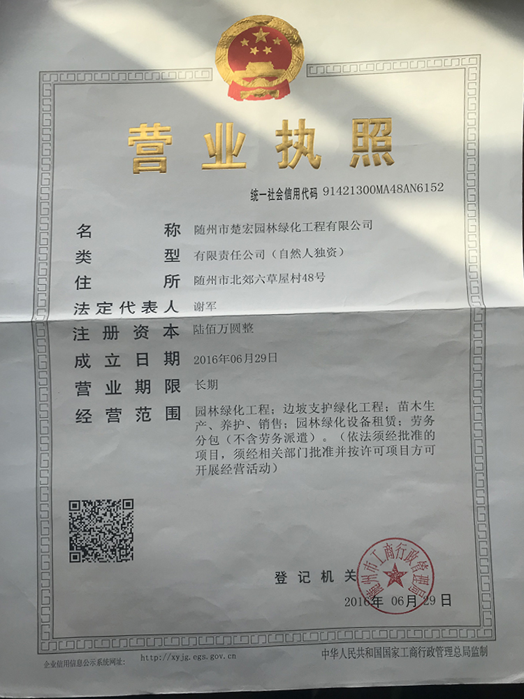 隨州市楚宏園林綠化工程有限公司是一家專業(yè)從事邊坡綠化,園林綠化,陡坡,基坑支護的設(shè)計及施工業(yè)務(wù)。對各類高速鐵路,公路邊坡綠化,礦山復(fù)綠,園林綠化,園建鋪裝有著多年的施工經(jīng)驗。本公司擁有專業(yè)的施工團隊,多套專用設(shè)備,技術(shù)實力雄厚,曾經(jīng)參入各類高速鐵路,公路,市政,房地產(chǎn),公園的綠化及支護工程,積累了豐富的施工經(jīng)驗,完成過多項重大項目的綠化及支護工程,本公司一直與中鐵十五局合作,完成過武廣高鐵,瀘昆高鐵的邊坡支護,邊坡綠化工程,被中鐵十五局評為優(yōu)秀合作單位。2018年度廣州普邦公司評為優(yōu)秀供方,每份榮譽來之不易。本公司經(jīng)營理念為:質(zhì)量求生存,信譽求發(fā)展,互利雙贏,成為長期的合作伙伴。